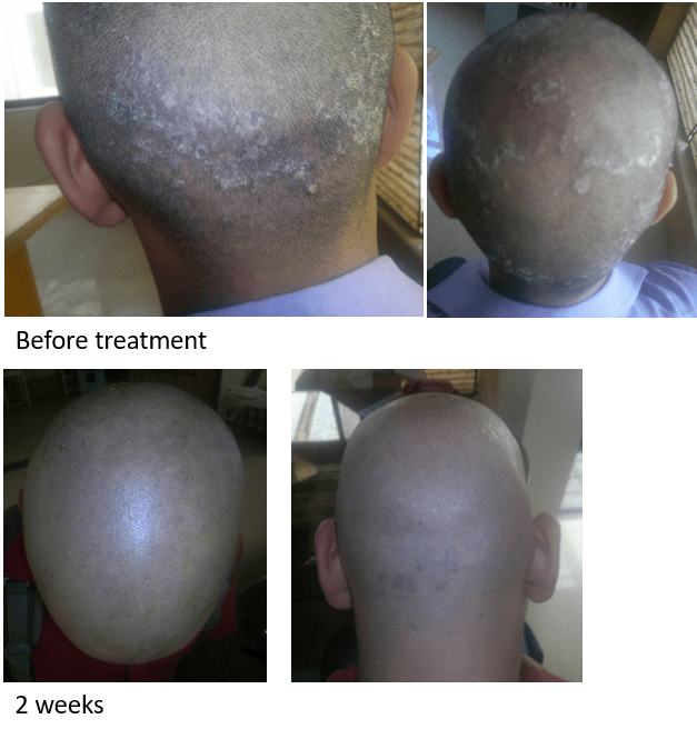CASE STUDY 1: Man with scalp psoriasis, being treated for 2 years before the super curcumin treatment.
