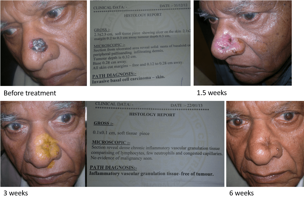 The treatment options for skin cancer will vary, depending on the size, type, depth and location of the lesions. Small skin cancers limited to the surface of the skin may not require treatment beyond an initial skin biopsy that removes the entire growth. Additional treatment options include freezing, excisional surgery, Mohs surgery, cryotherapy, radiation, chemotherapy, etc. All of these treatments are complex and painful.